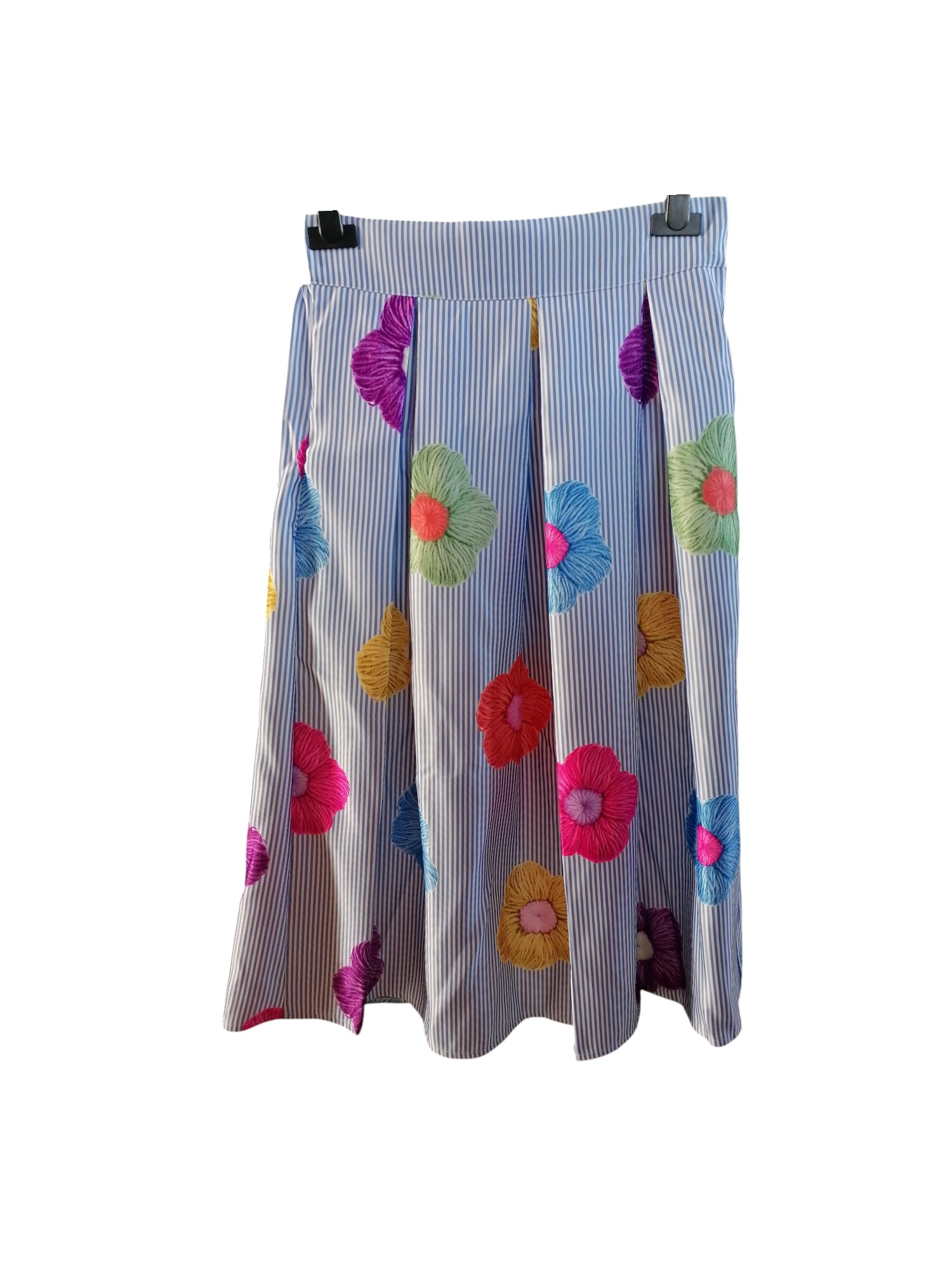 Fusta dama cu dungi albastre si floricele PFP116, marime universala