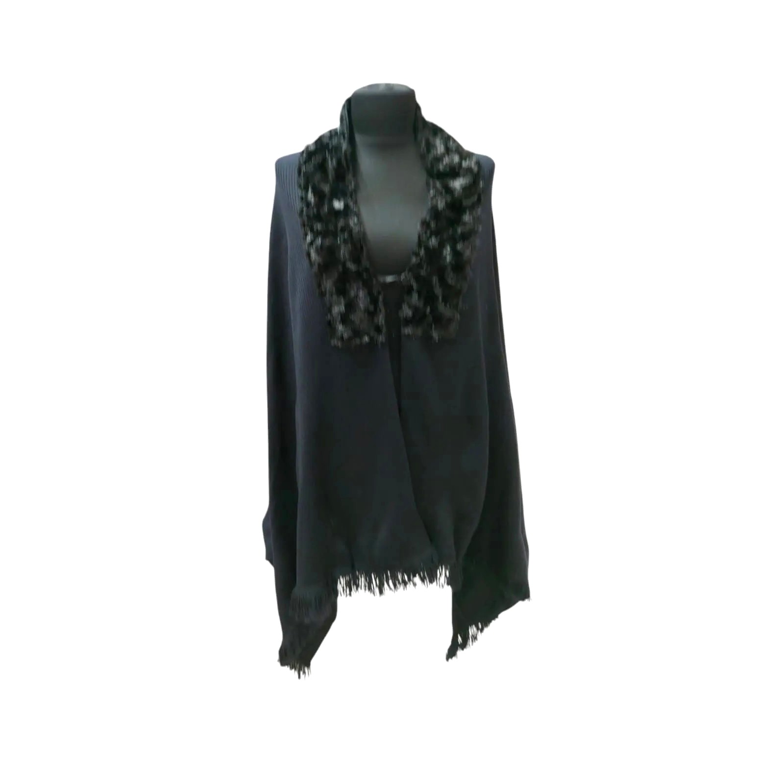 „Șal tricotat cu guler blănă și închidere cu nasture. Călduros, elegant și confortabil, perfect pentru iarnă. Disponibil în multiple culori. Livrare rapidă!”